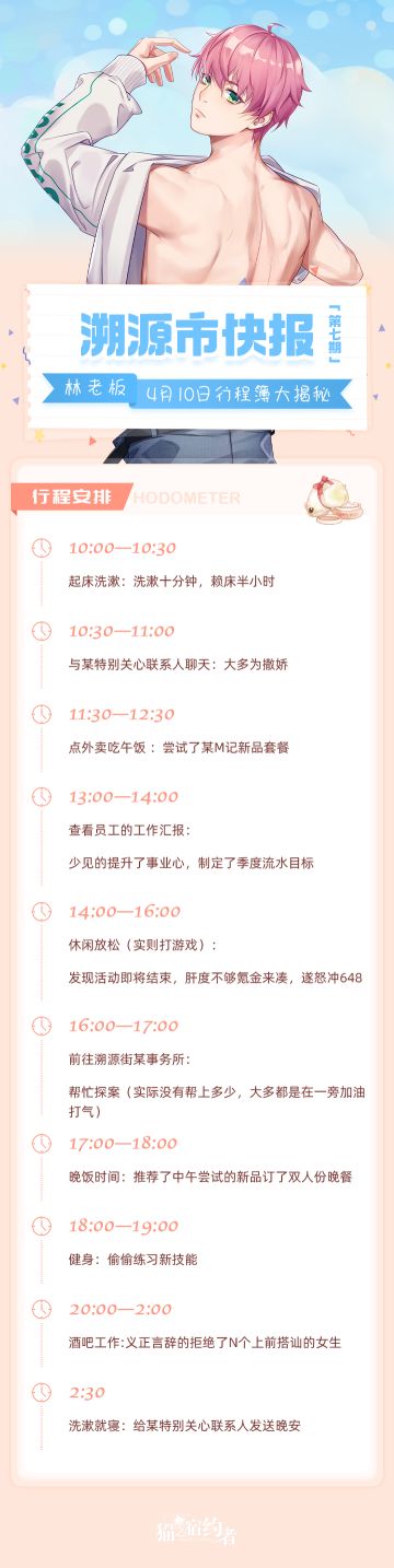 { "text": "今日报讯:\n林老板4月10日行程簿大揭秘\n\n今日话题:\n探长大人们觉得什么时候的林斯年最吸引你?\n欢迎在评论区留下你的看法~", "raw_text": "" }