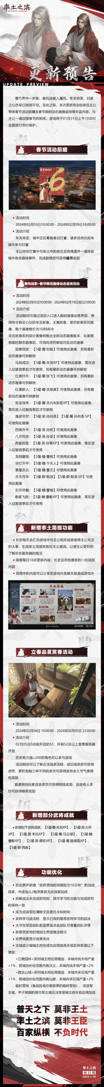 《率土之滨》2024春节活动预告