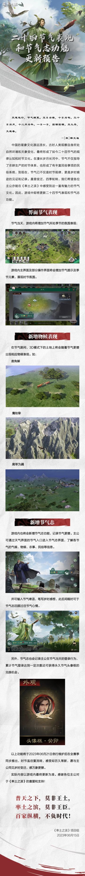 《率土之滨》二十四节气表现和节气志功能更新预告