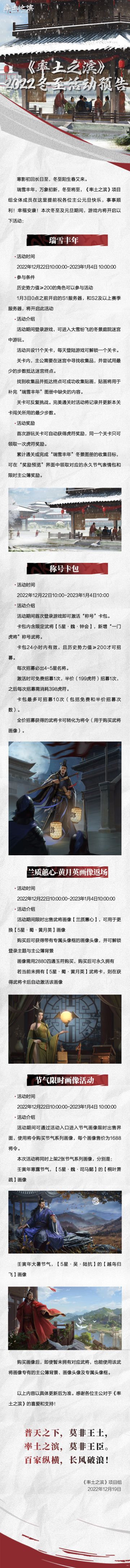 冬至阳生春又来,《率土之滨》冬至有奖互动活动