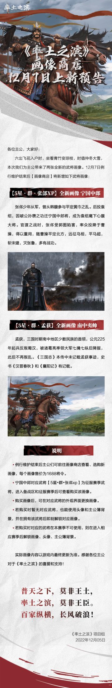 { "text": "《率土之滨》画像商店12月7日上新预告", "raw_text": "" }