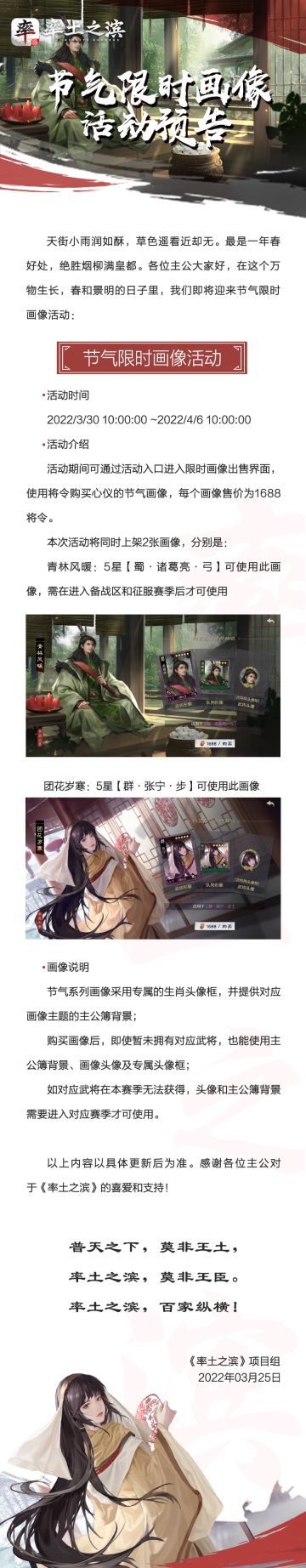 《率土之滨》2022春分活动预告