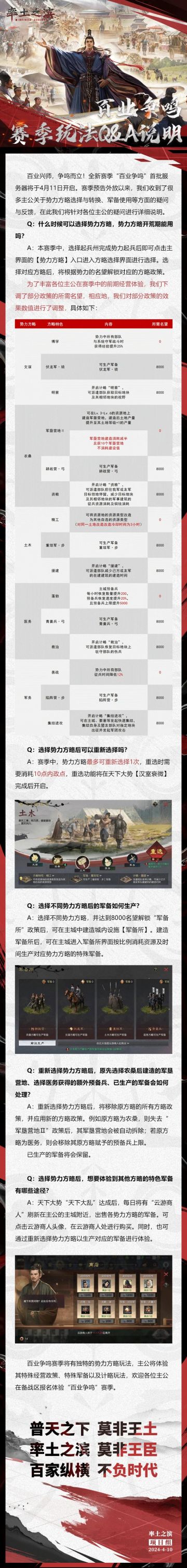 《率土之滨》百业争鸣赛季玩法Q&A说明