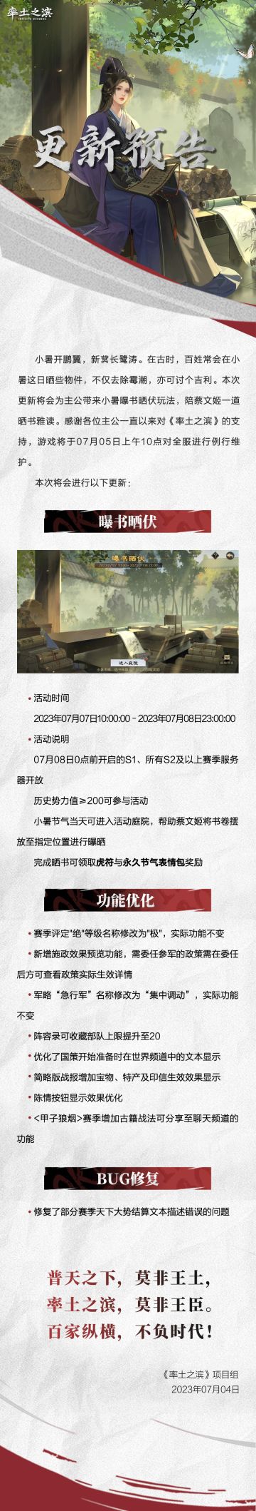 《率土之滨》07月05日例行更新预告