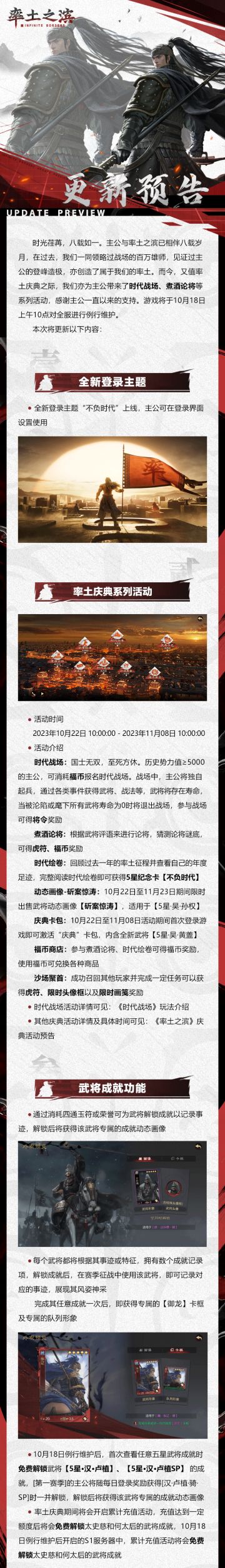 《率土之滨》10月18日例行更新预告