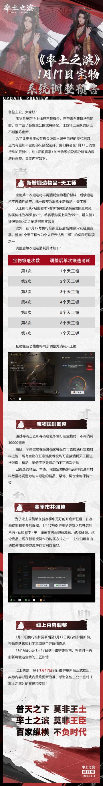 《率土之滨》1月17日宝物系统调整预告