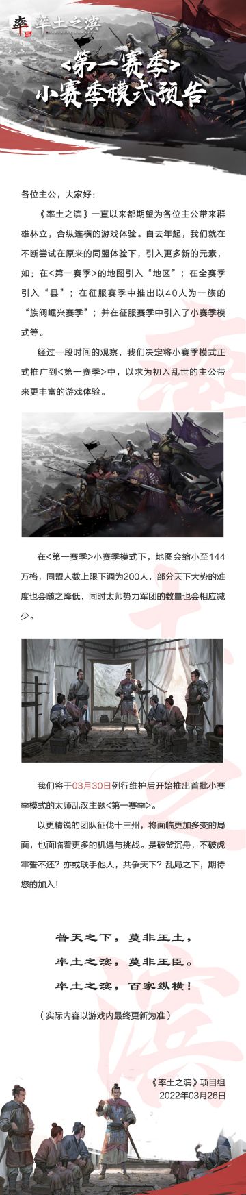 《率土之滨》<第一赛季>·小赛季模式预告