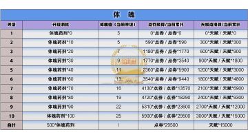 天赋篇#1:体魄&脑力升级消耗表