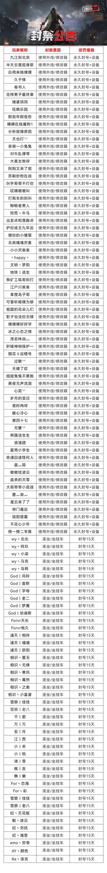 2月26日-3月4日净化游戏环境声明及处罚公告