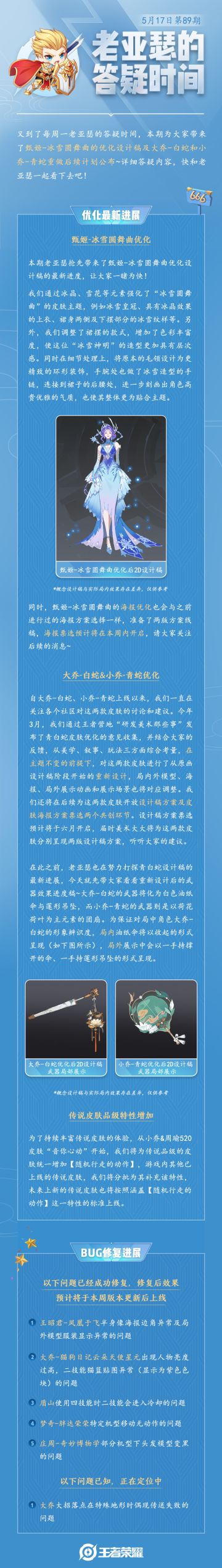 老亚瑟的答疑时间|冰雪圆舞曲优化设计稿,青白蛇重做后续计划