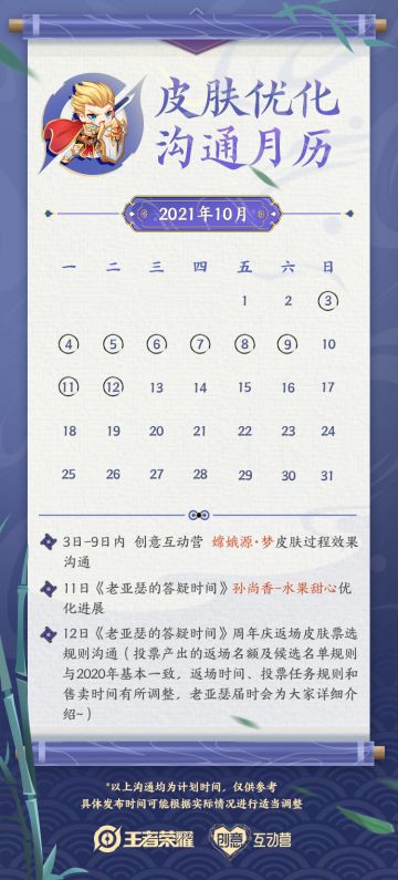 老亚瑟的答疑时间|十月皮肤优化沟通月历