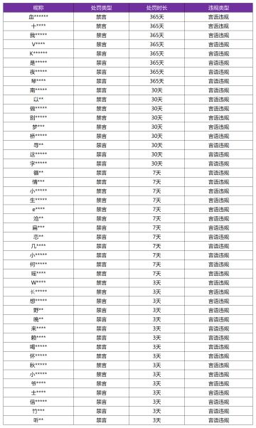 11月13日言语违规专项打击处罚公告