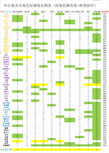 【环行旅舍】全角色礼物表(按照稀有度+角