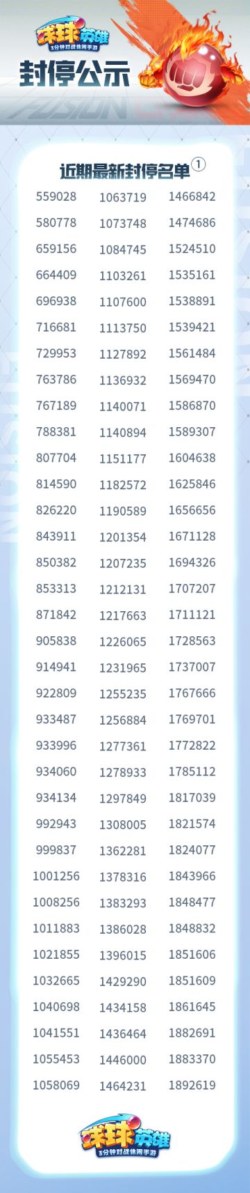 【封停公示】本周封禁名单公示-11月3日