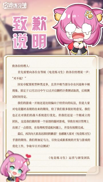 《电竞练习生》12月25日测试延期!是的,这次我们真的跳票了!