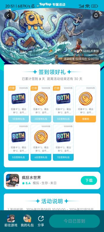 海上生存日记02 | 1月23日前往游戏潜水开箱有机会白嫖1g黄金!