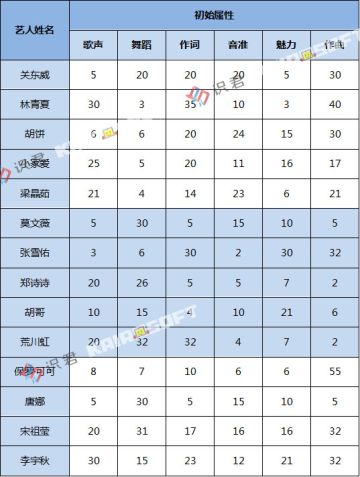 《百万乐曲物语》进阶篇:艺人初始属性一览