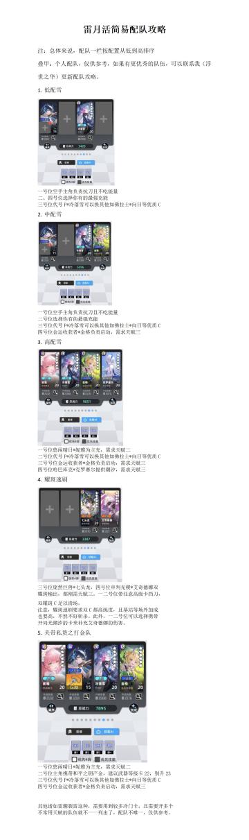 雷月活先行攻略