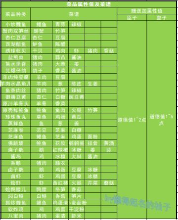 整理了一下各种菜分别加什么属性值,以及怎么做菜(菜品属性值及菜谱)