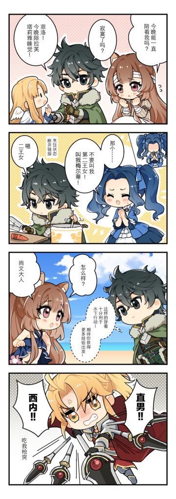 劳动节快乐!阿怪送礼包喽! 忙忙碌碌要停歇,春风吹来劳动节! 最光荣的事是劳动,最体面的人是劳动者。咱们的尚文大人来到异世界以后各项技能都拿捏住了,现在甚至开始指导伙伴提升烹饪技能啦,可谓是异世界体面人! 为犒劳和尚文大人一样努力的勇者大人们,阿怪来送劳动节礼包喽! 愿勇者大人五月的每一天,都是五月天,劳动节快乐!O(∩_∩)O 劳动节礼包:laodongjie666#盾之勇者成名录:浪潮