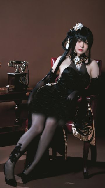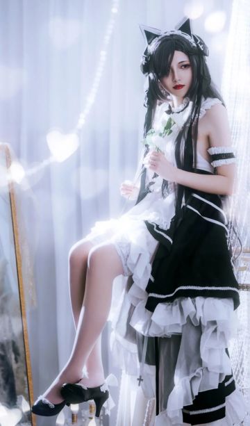 cos:碧蓝航线魔女仆奥古斯特,整体偏黑色的造型让其强大的气场更甚,双腿交叠而坐,那迷人的线条沿着其小腿的弧度蔓延开来