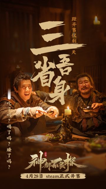 "text": "三省吾身为日常,\n每天为了吃喝忙.\n悬案未破寝无望,\n神都不良探真棒!\n距离《神都不良探》4月28日Steam开售还有3天!😆各位不良探吃好喝好睡好,三日之后开启神都废寝忘食探悬案模式😉",