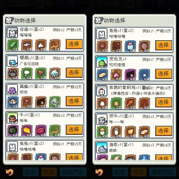 新版动物产出展示及新增的鱼类产出