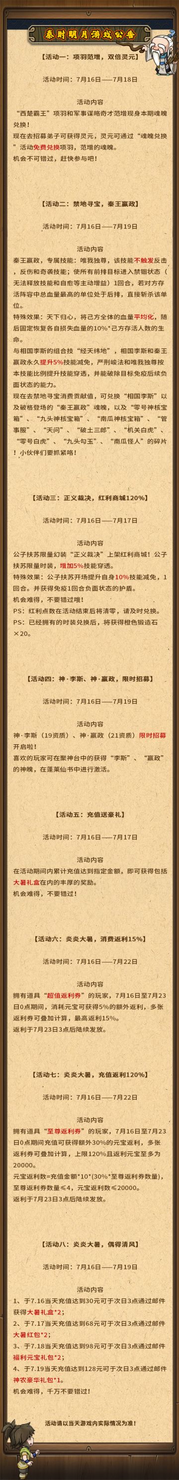 《秦时明月》7月16日活动公告