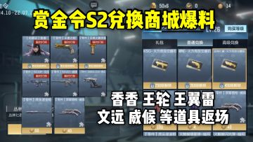 香香+王轮+文远+威候等道具返场,赏金令S2兑换商城爆料!