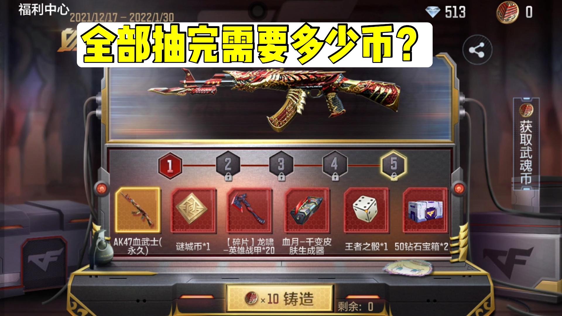 血铸武士魂活动上线,来看看全部抽完要多少武魂币!