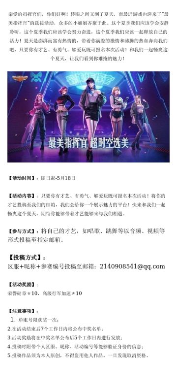 寻找最美指挥官!第二届超时空选美大赛开始啦!