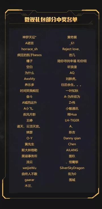 红警OL × 微视礼包中奖名单公布