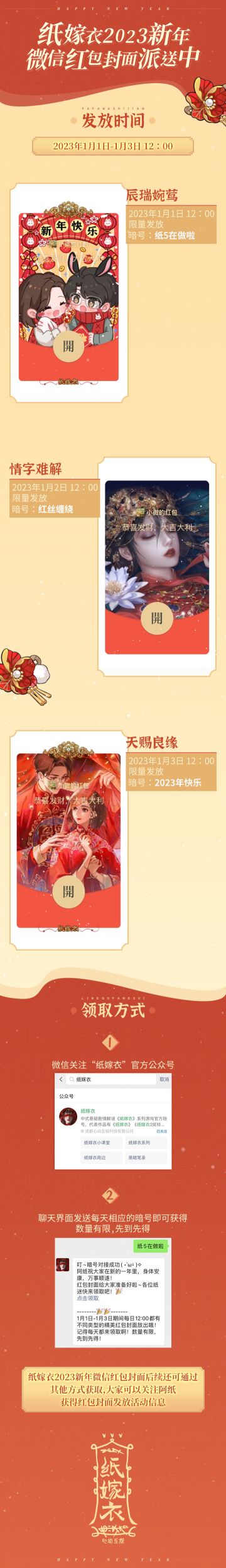 纸嫁衣兔年限定微信红包封面现已上架「纸嫁衣小铺」