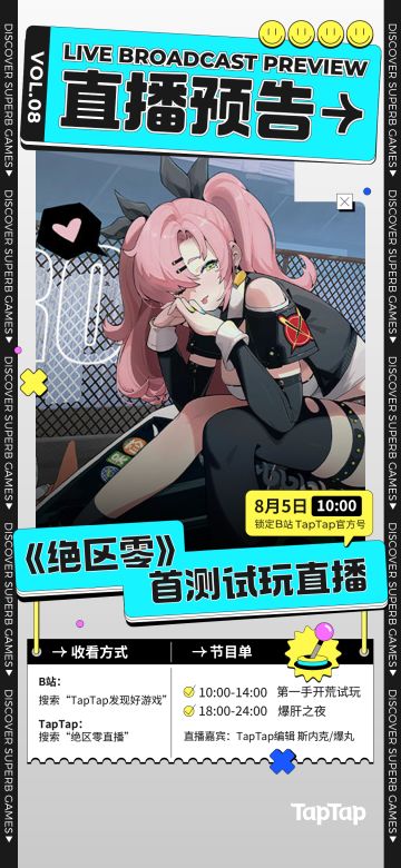 { "text": "各位亲爱的玩家,我们老规矩在周五10:00第一手开荒试玩《绝区零》~\nTapTap 搜索“绝区零直播”或B站搜索“TapTap发现好游戏”,都可以进入直播间,等你一起来看!", "raw_text": "" }