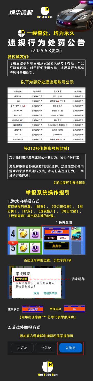 《绝尘漂移》违规行为处罚公告(6.3更新)