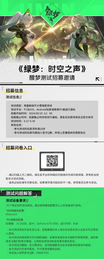 《绿梦:时空之声》测试招募即将结束~