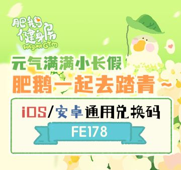 { "text": "元气满满小长假~店长大人!快和鹅鹅们一起去踏青吧!\n安卓/iOS通用兑换码【FE178】,肥鹅一起吧~~~", "raw_text": "" }