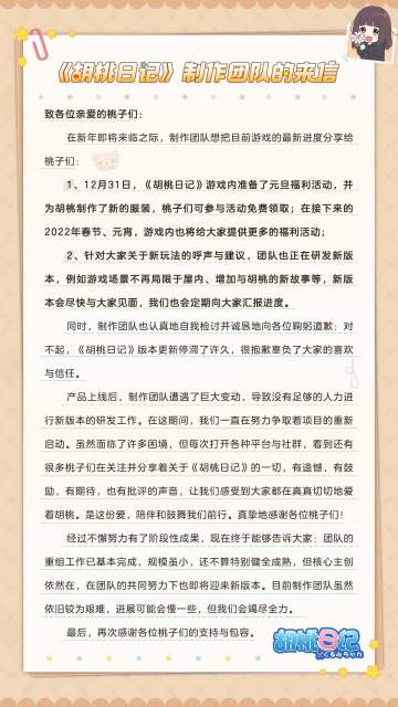 《胡桃日记》制作团队的来信