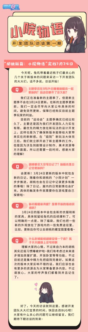 《胡桃日记》全新版本“胡桃新篇:小院物语”Q&A问答帖