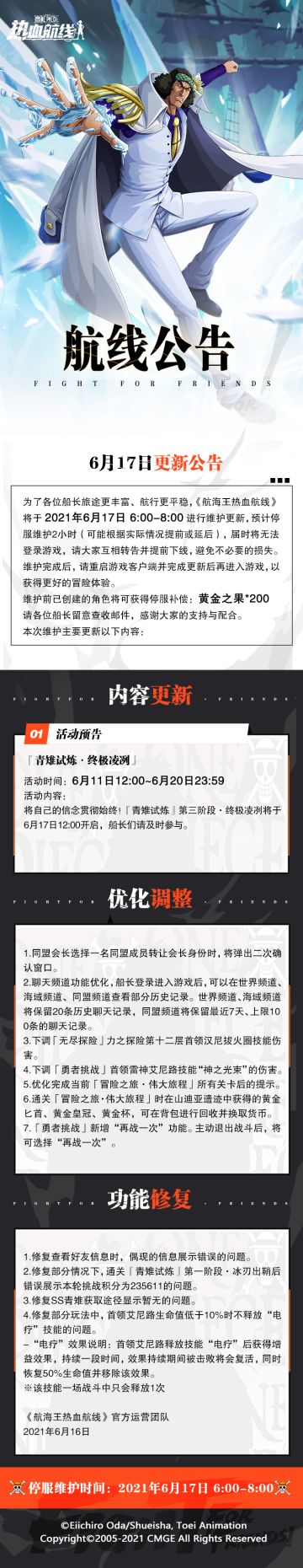 【维护公告】航海王热血航线7月21日例行维护公告