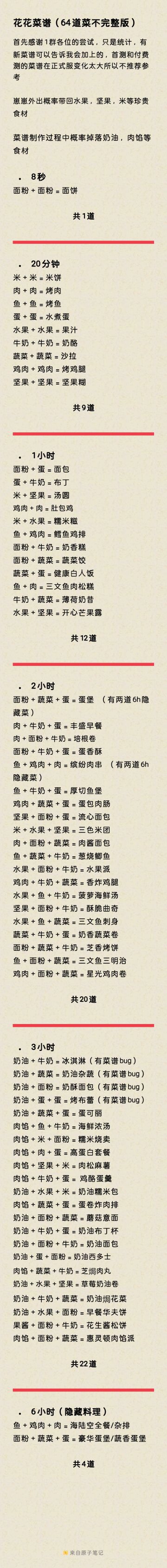 花花与幕间剧 菜谱攻略