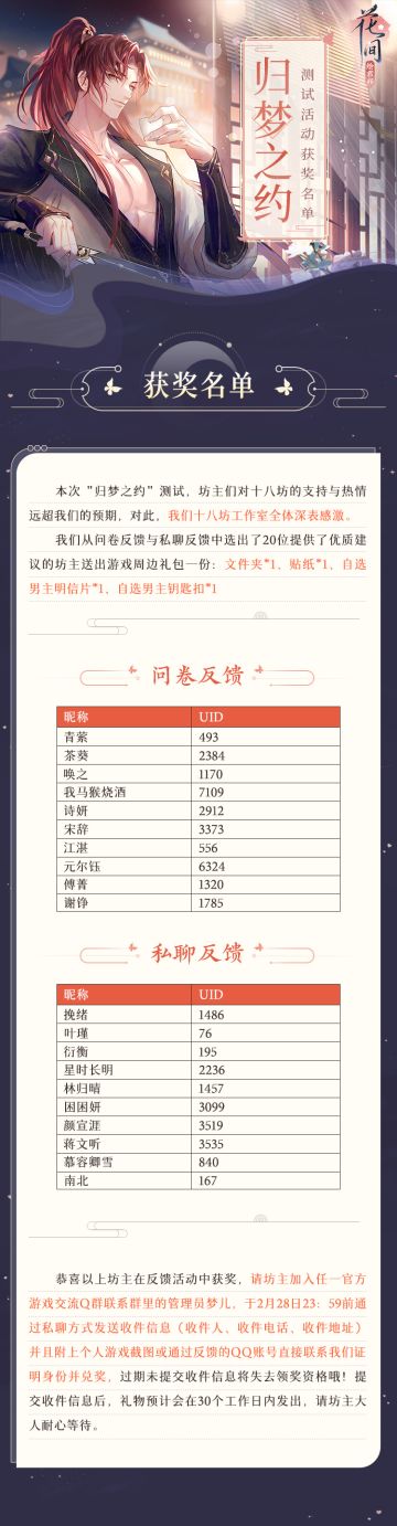 【“归梦之约”测试活动获奖名单公布】