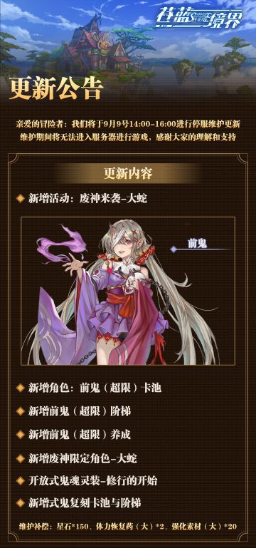 9月9日14:00-16:00停服维护更新公告9