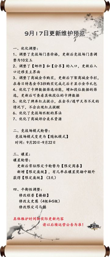 【9.17更新维护预览】