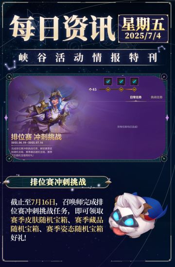 【已开奖】赛季末冲刺挑战开启,直登峡谷之巅!