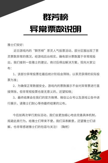 【公告】群芳榜异常票数说明