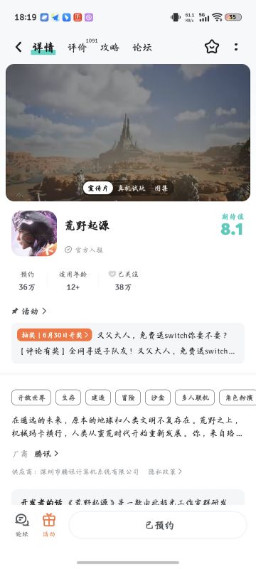 腾讯新作《荒野起源》公布3分钟全新实机