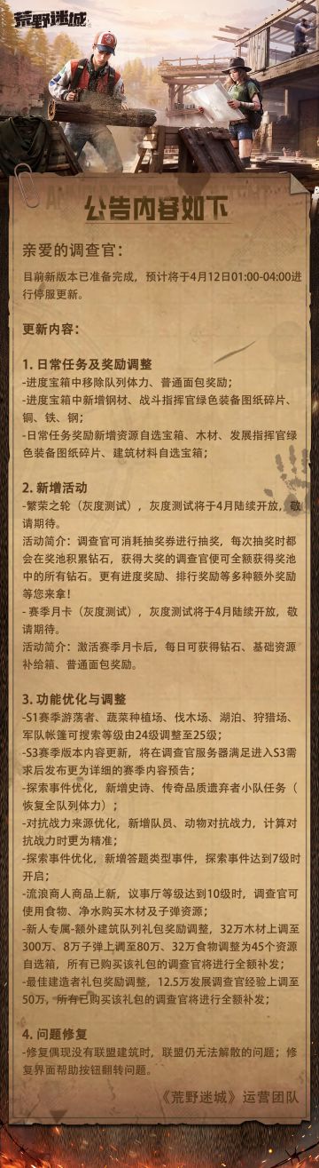 《荒野迷城》4月12日更新公告