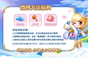 满级摸鱼小助手泡泡现已入驻微博平台,关注有福利!