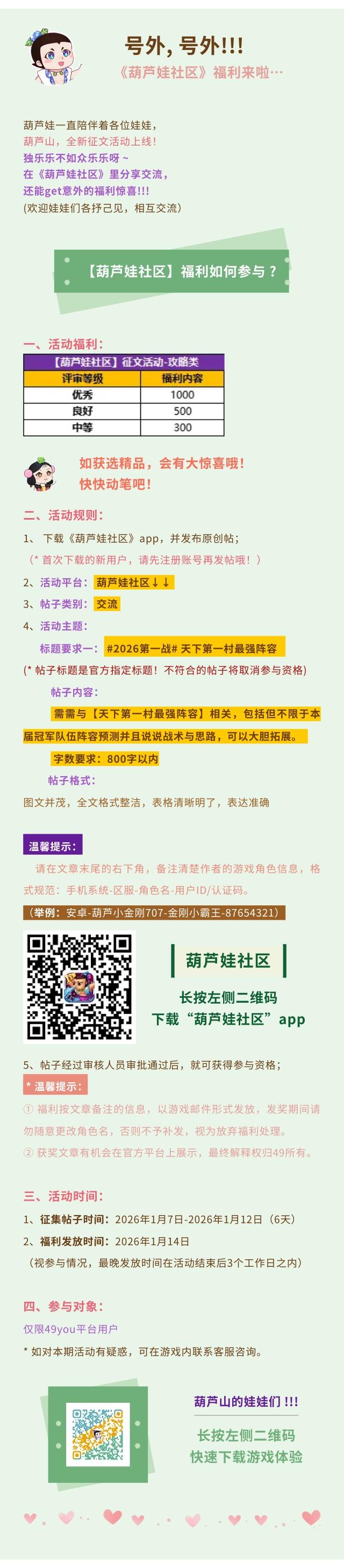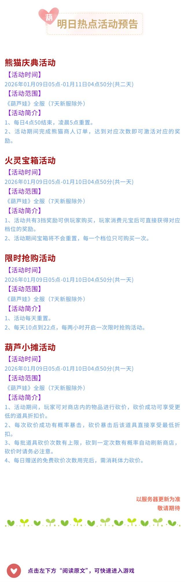【葫芦娃】1月10日活动预告